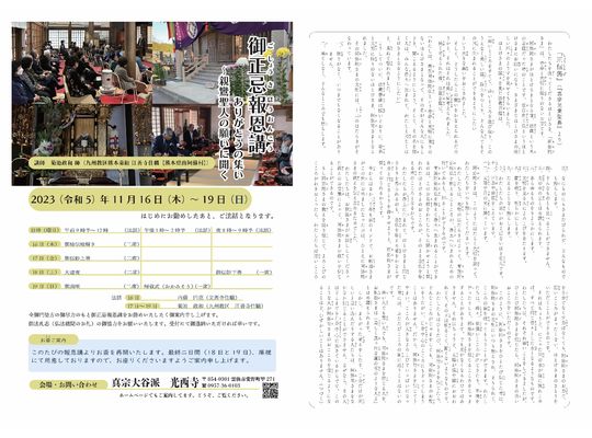 11月16日から19日まで、おかげをもちまして御正忌報恩講をお勤めすることができました。仏具のおみがきから始まり、餅つき、御華束盛、花立、幕張、清掃奉仕、お斎のボ...